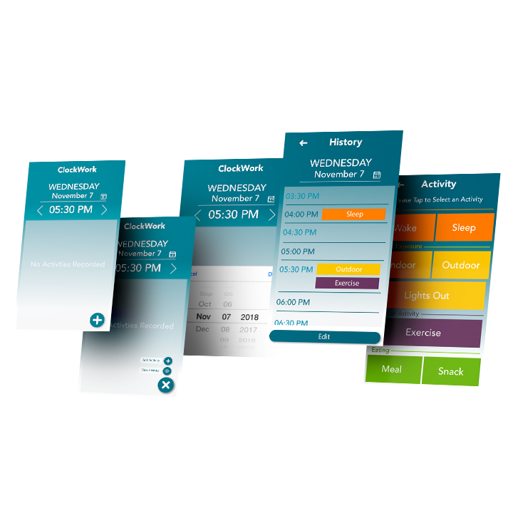 Clockwork is an app design to help record patient’s events following the biological clock. The concept for this design and layout was to be bright and simple to use. The object of the app is simple in itself and I wanted the design to reflect this. This project is still in development.